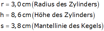 zusammengesetzter Körper besteht aus einem Zylinder