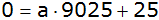 c = 25, da